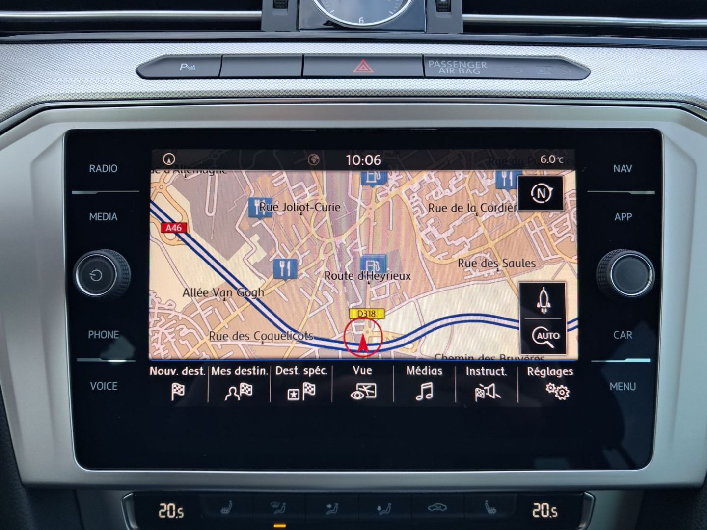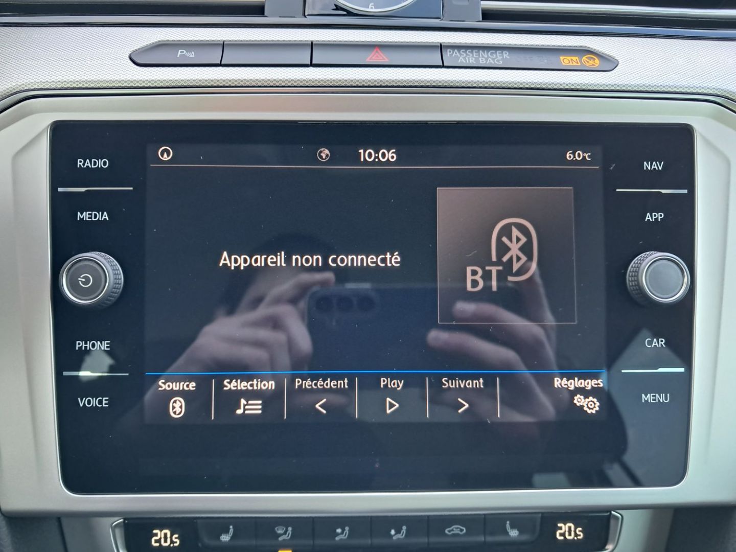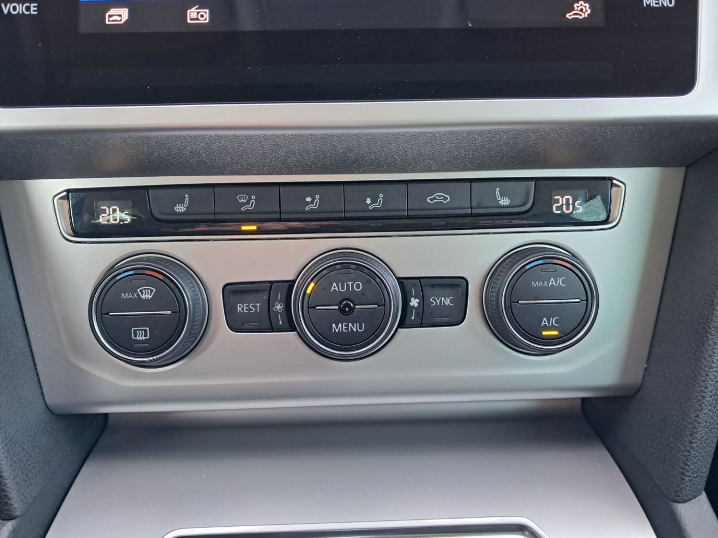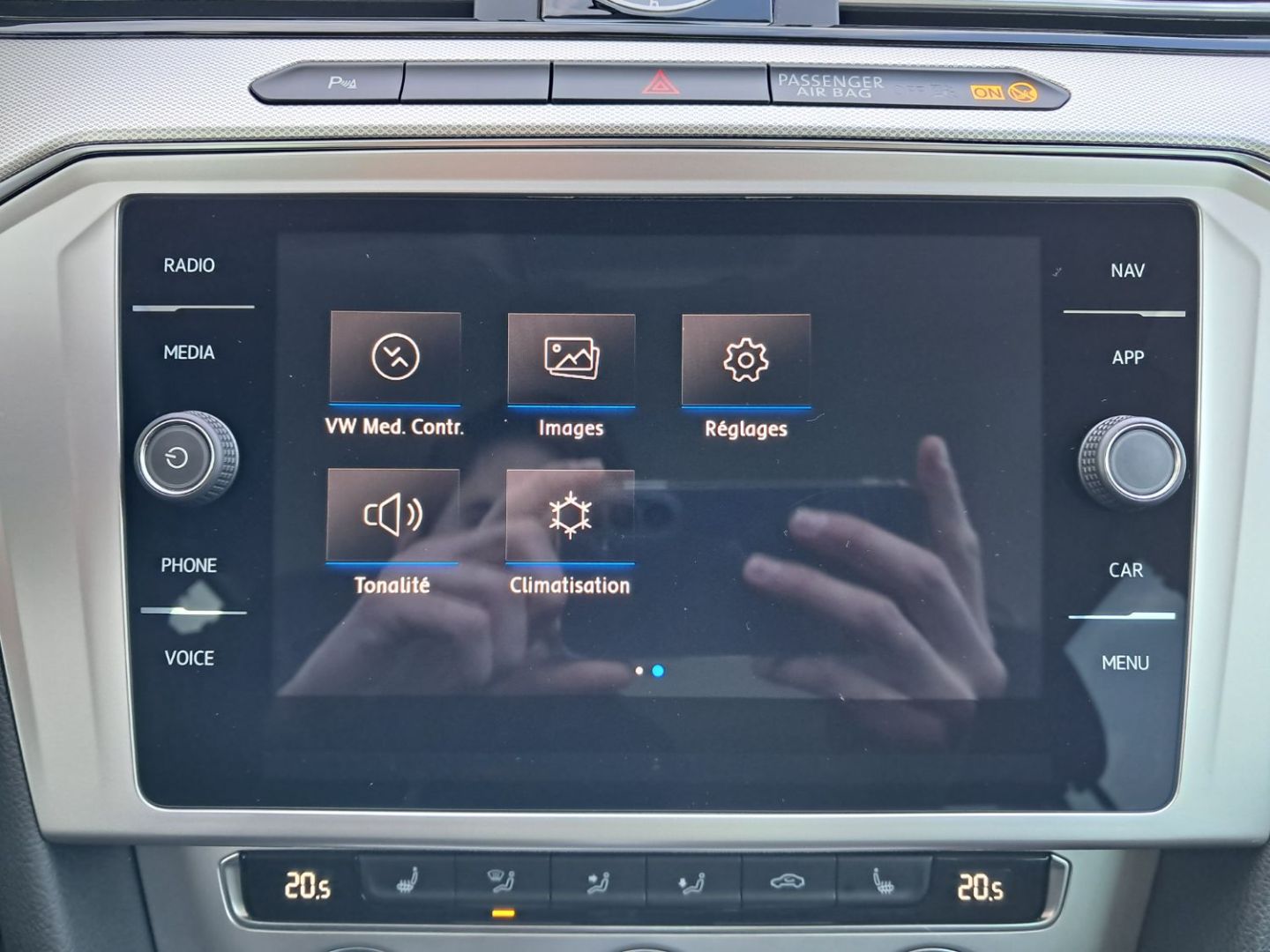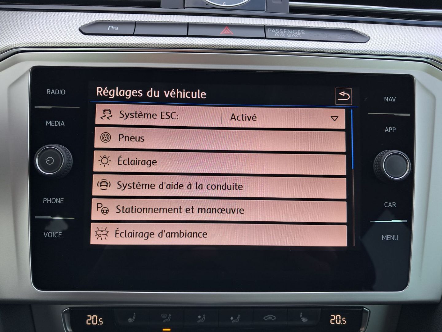 | Accoudoir central AV réglable en hauteur et en profondeur avec compartiment de rangement, avec entourage des aérateurs chromées AR | |